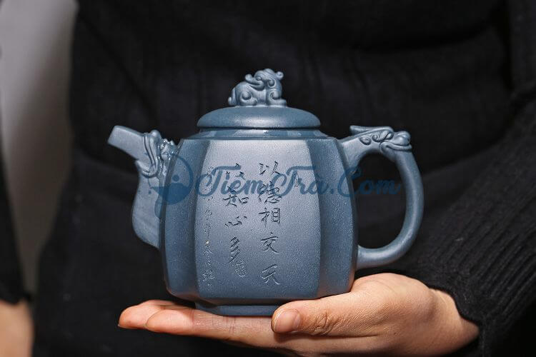 Bài thơ chữ hán được khắc 1 mặt trên thân ấm